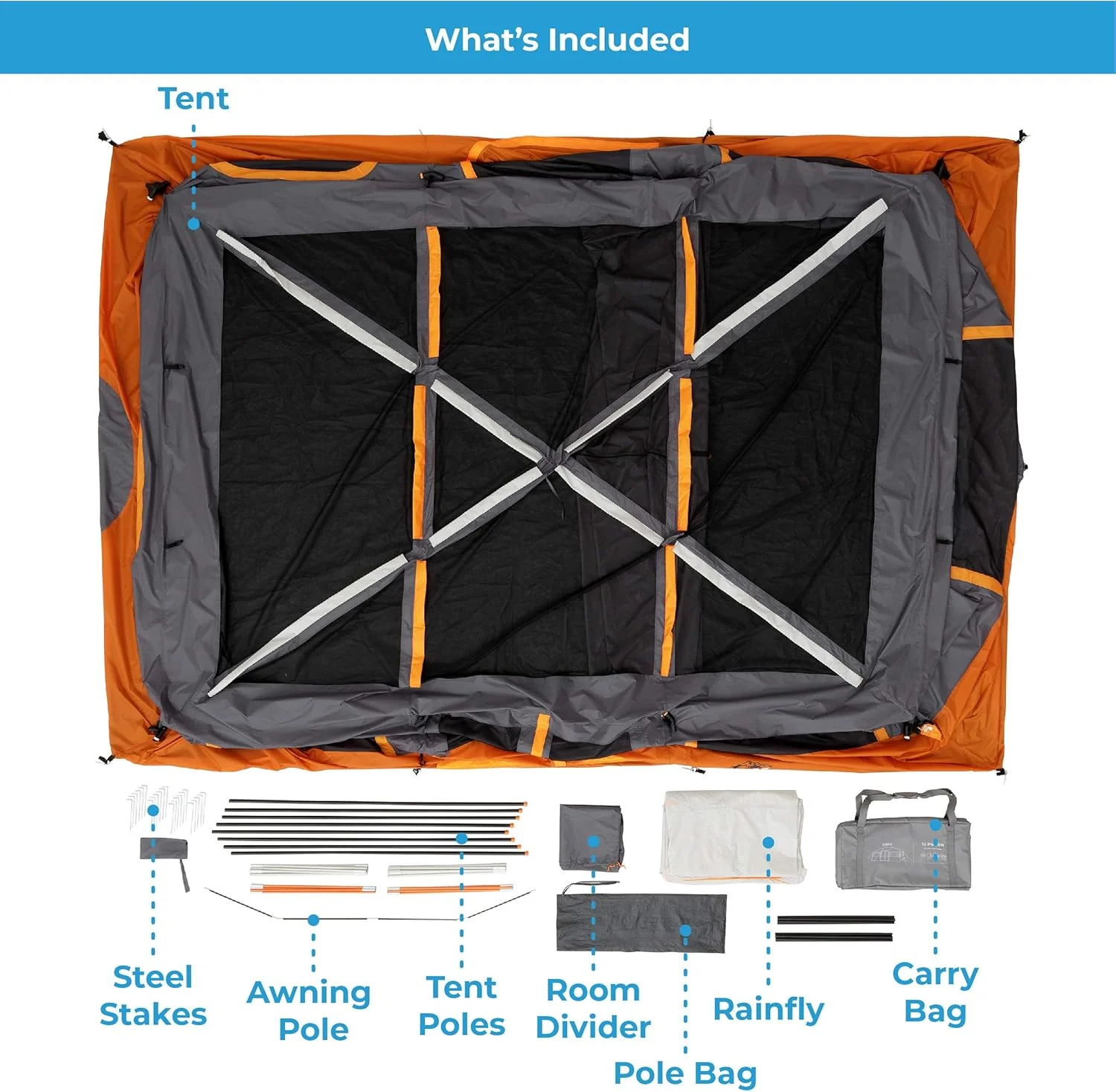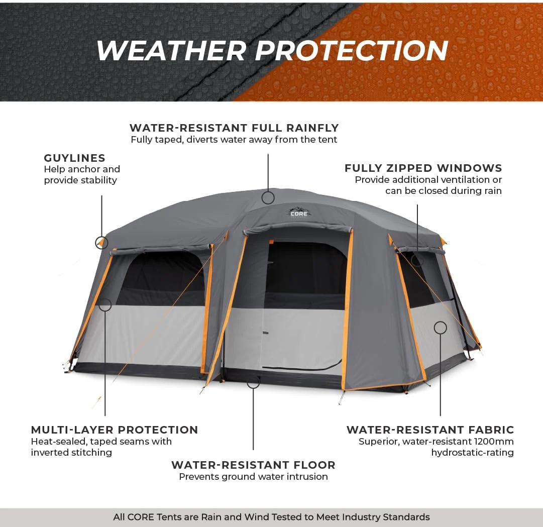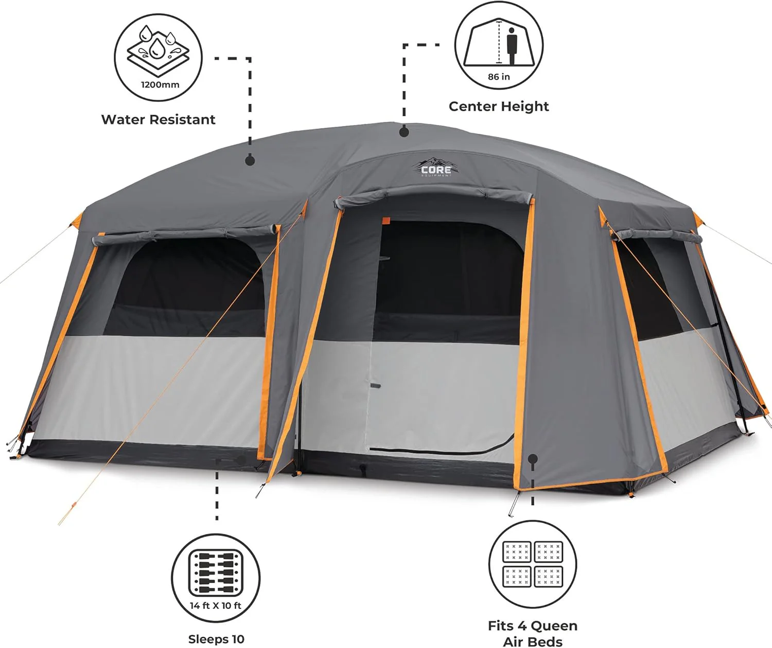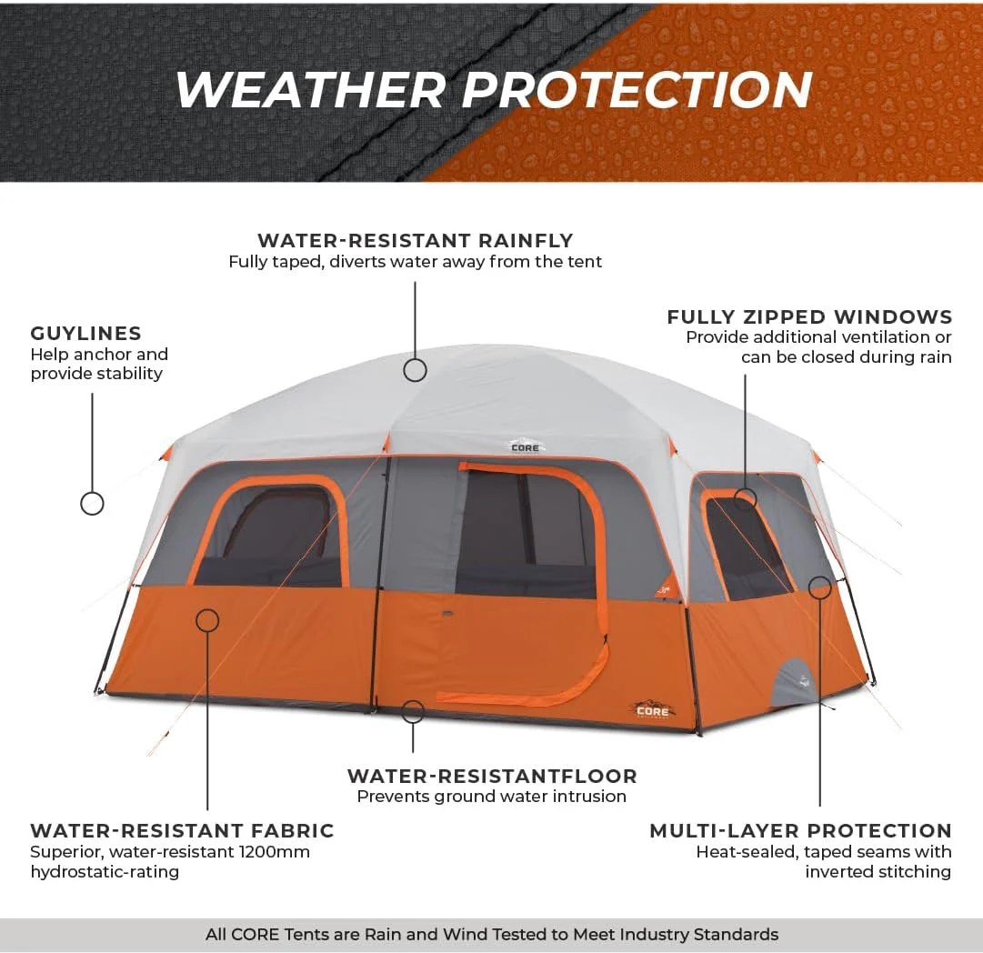 Straight Wall Cabin Tents | 10 Person / 11 Person / 12 Person Large Multi Room Family Tents for Car Camping & Outdoor Adventures