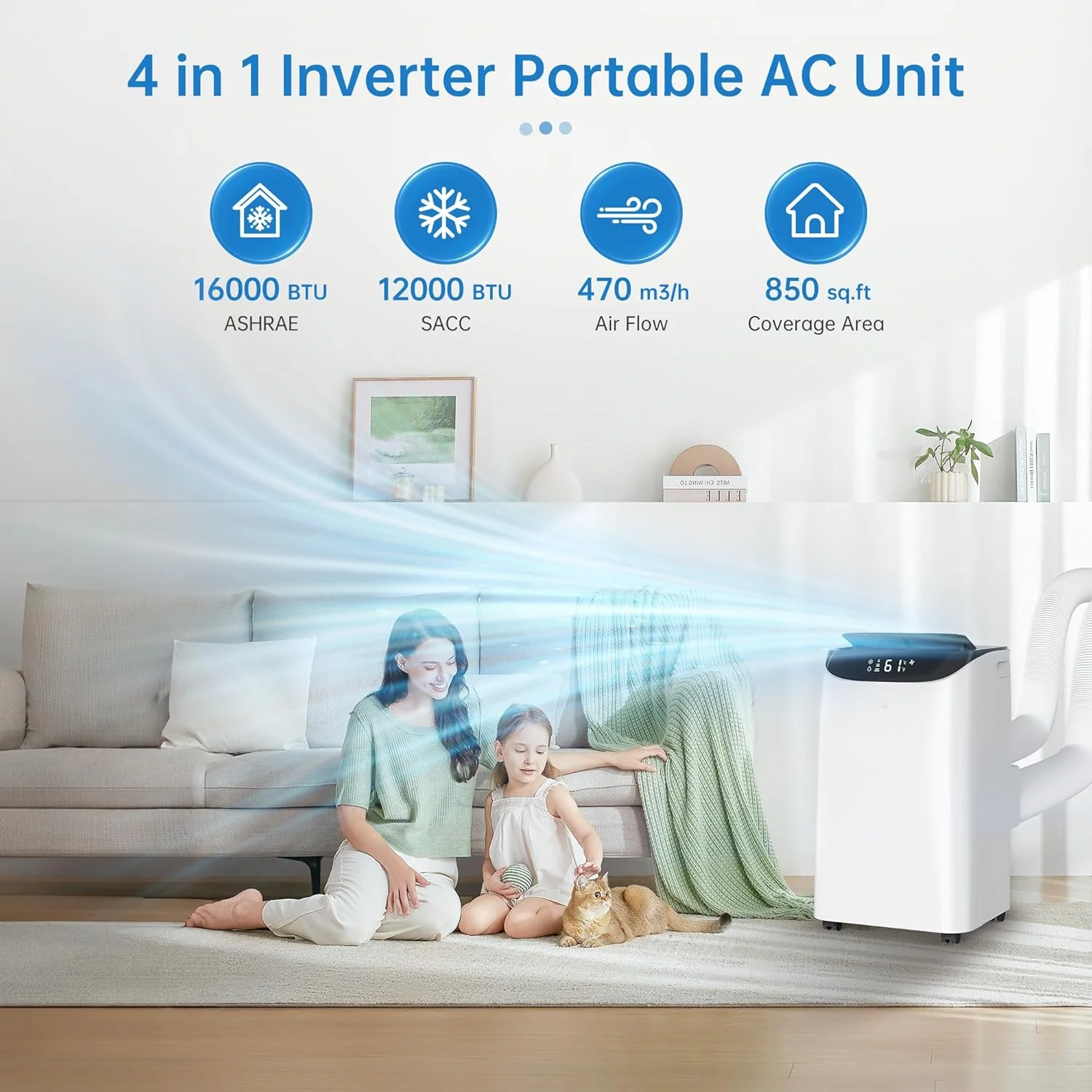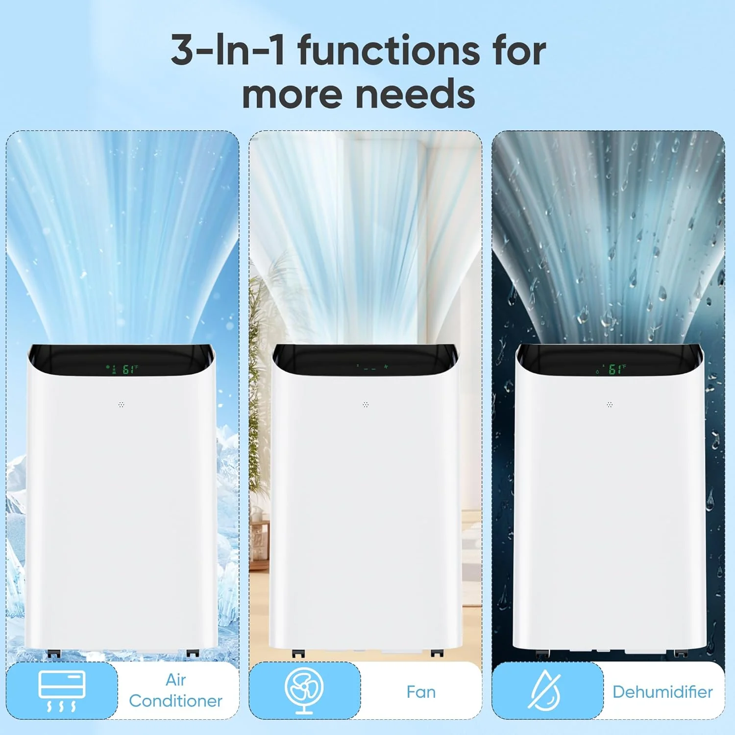 Portable Air Conditioner Cools Up to 700 Sq.Ft, 3-IN-1 Energy Efficient Portable AC Unit with Remote Control & Installation Kits for Large Room, Campervan, Office, Temporary Space