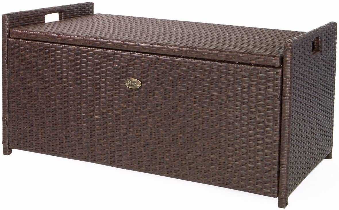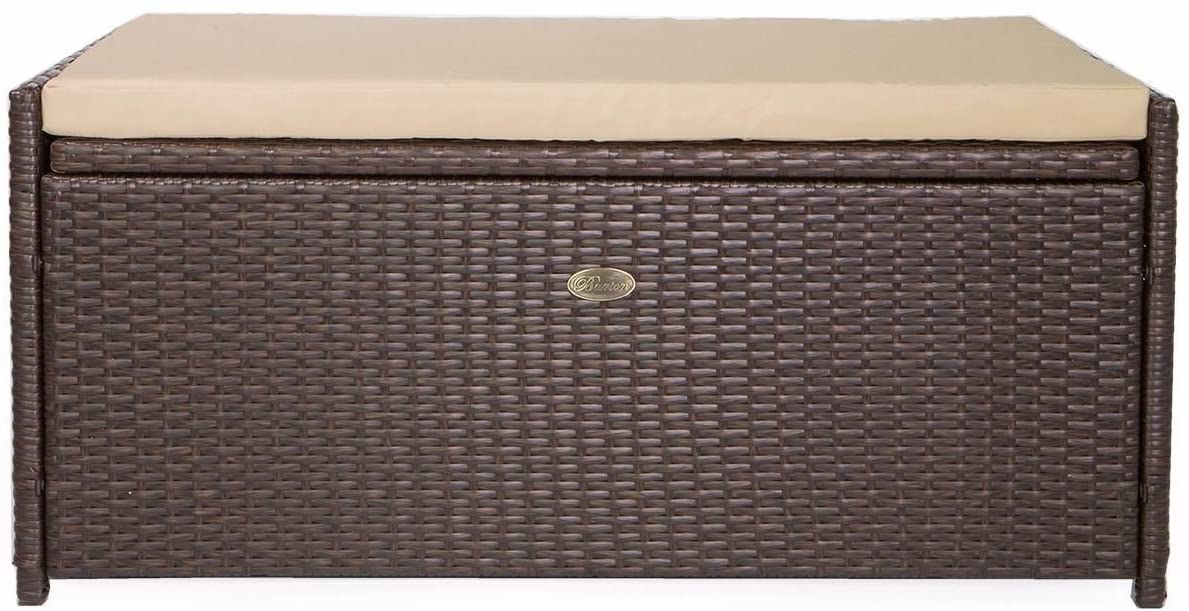 Outdoor Storage Bench Rattan Style Deck Box Wicker Patio Furniture Water Resistance w/Seat Cushion, 60-Gallon, Brown