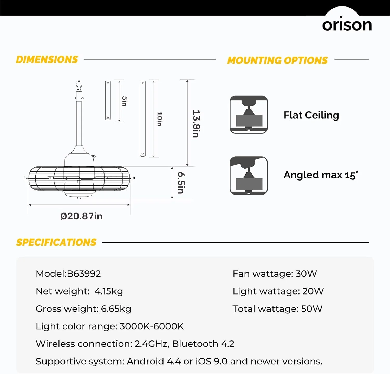 Outdoor Ceiling Fan with Light, Plug in Ceiling Fan with Remote, Gazebo Fans Outdoor Hanging for Patios Waterproof, Wet Rated Hanging Fan with App Control