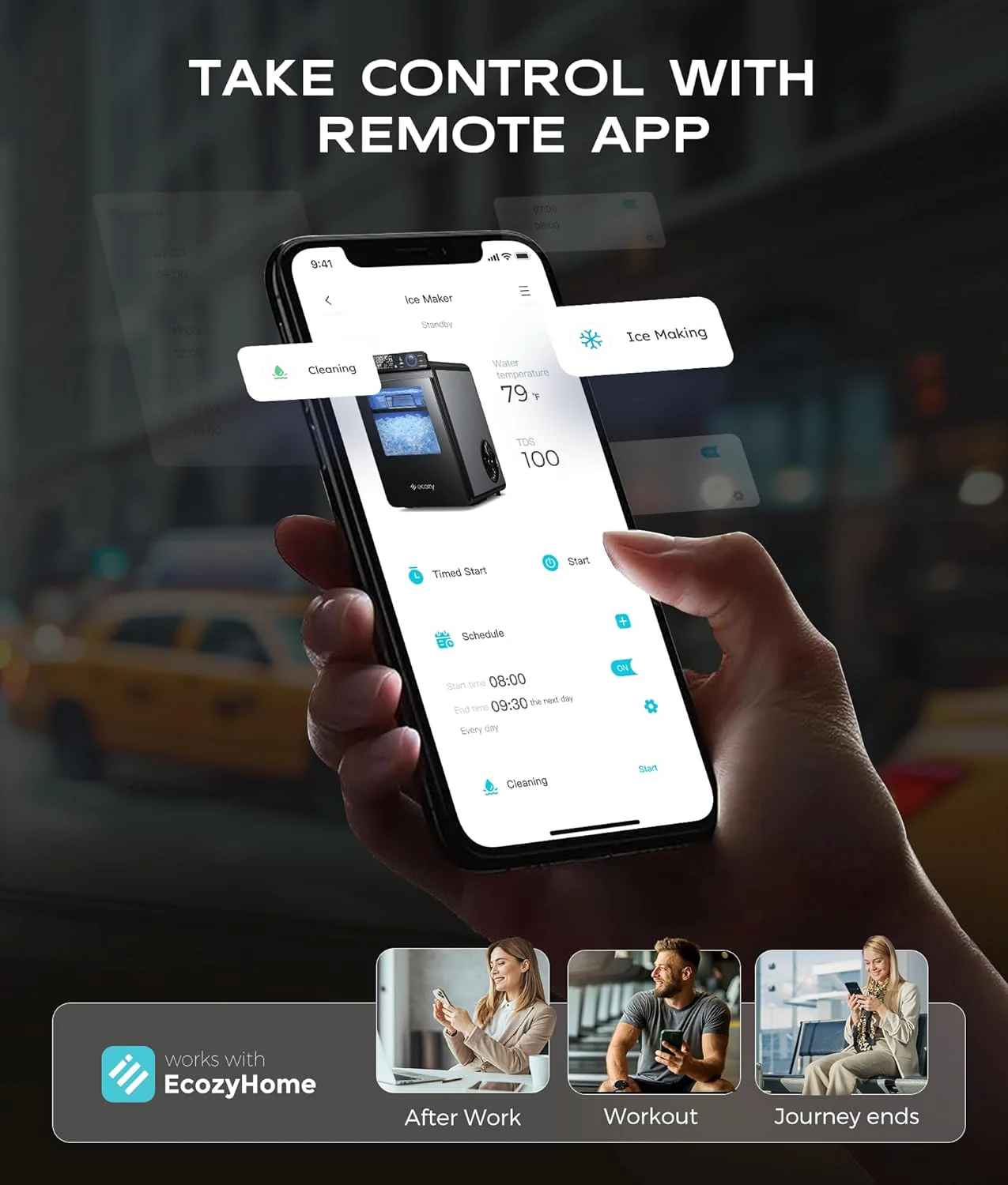 Nugget Ice Maker Countertop, Smart Pebble Ice Machine with APP Control, 44 lbs/24H Soft Pellet Chewable Ice with Self-Cleaning, Stainless Steel.