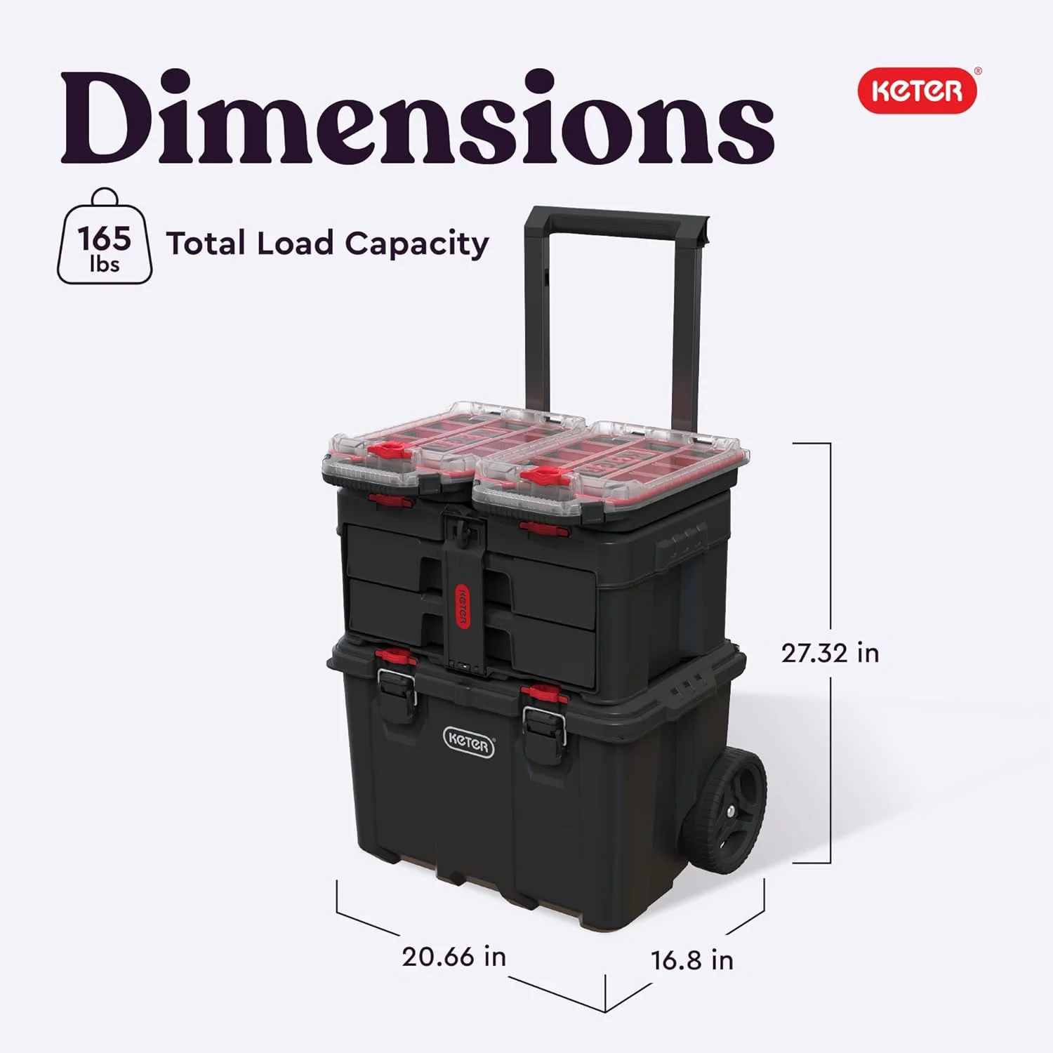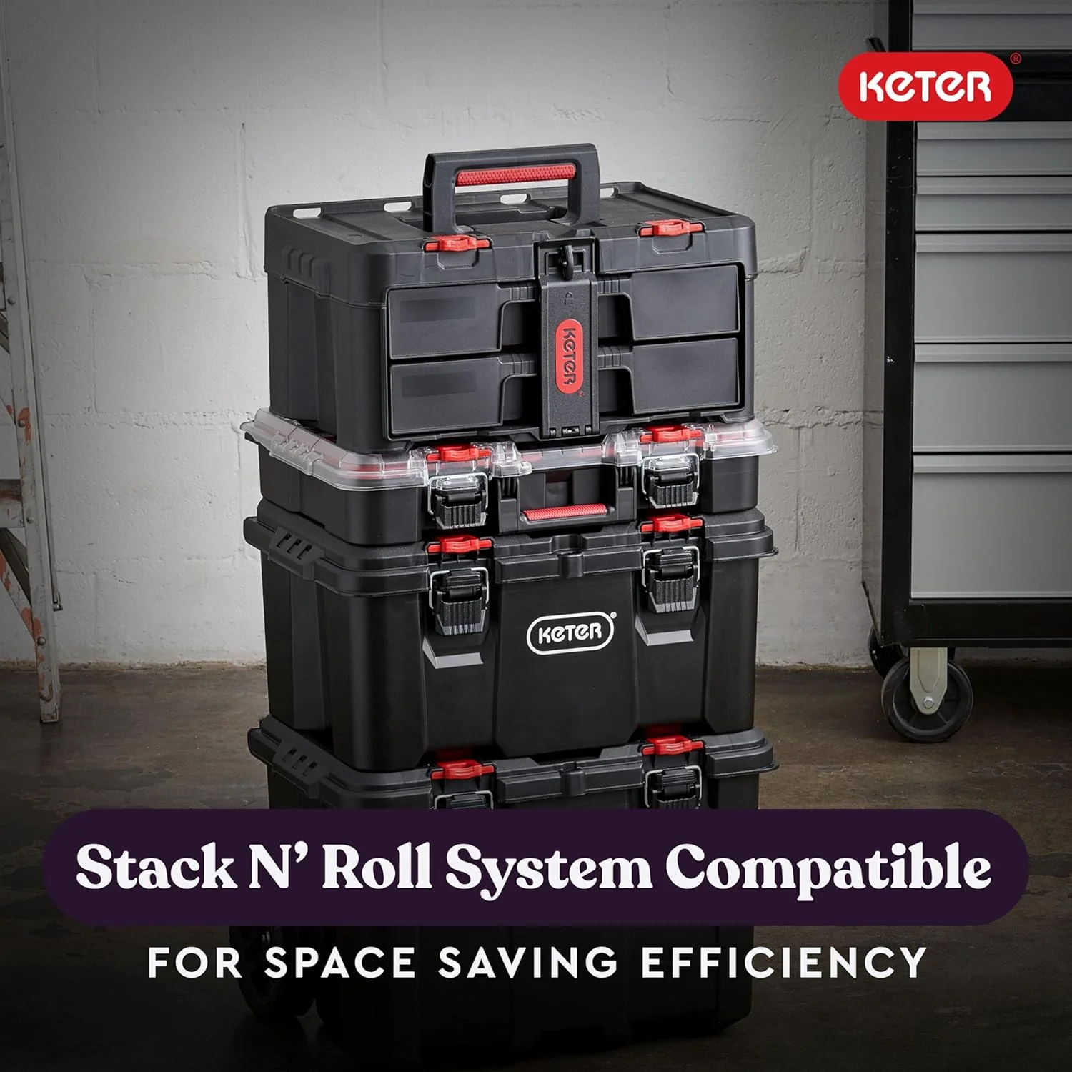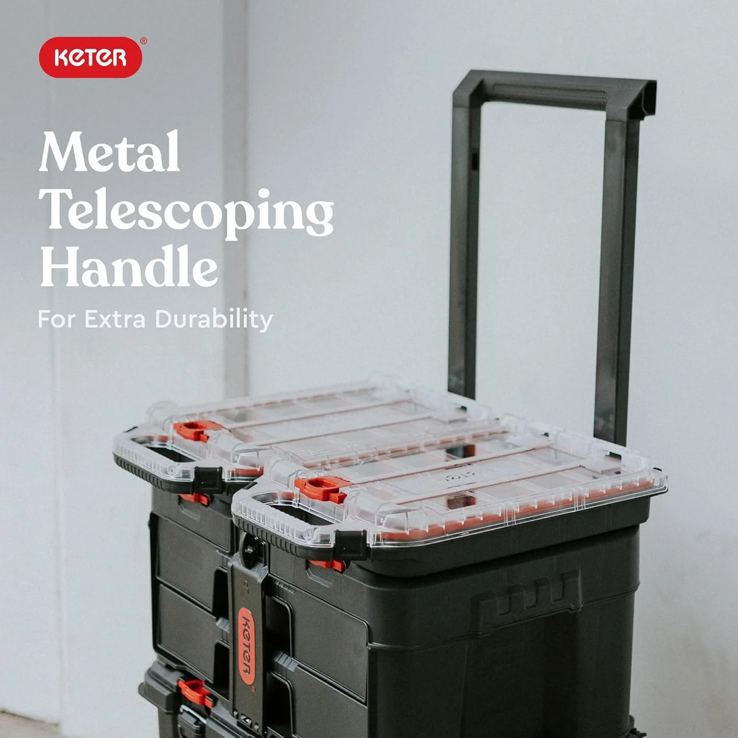 Modular Tools Organizer for Garage Storage and DIY, 3 Piece Resin Rolling Tool Box System for Small Parts