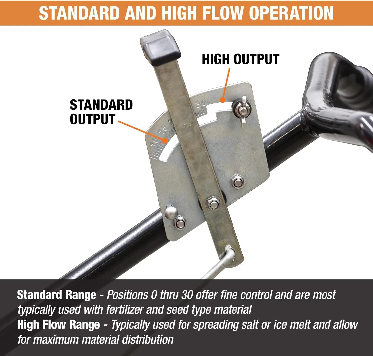 Multi-Purpose Walk Behind Push Spreader, 100 Pound Capacity, Multi Use Tool for Grass Seed, Salt, De-Icer, Fertilizer and Seeds