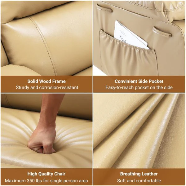 PU Leather Power Lift Recliner Chair With Massage and Heat, Adjustable Furniture for Back, Legs w/ 3 Positions, Usb Port, Side Pocket (Beige, 27 Seat Width+Cup Holders)